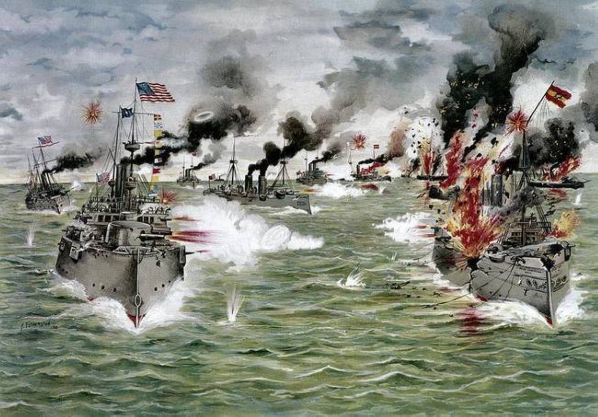 1898 إغراق مدمرة أمريكية في ميناء هافانا يشعل الحرب مع إسبانيا.