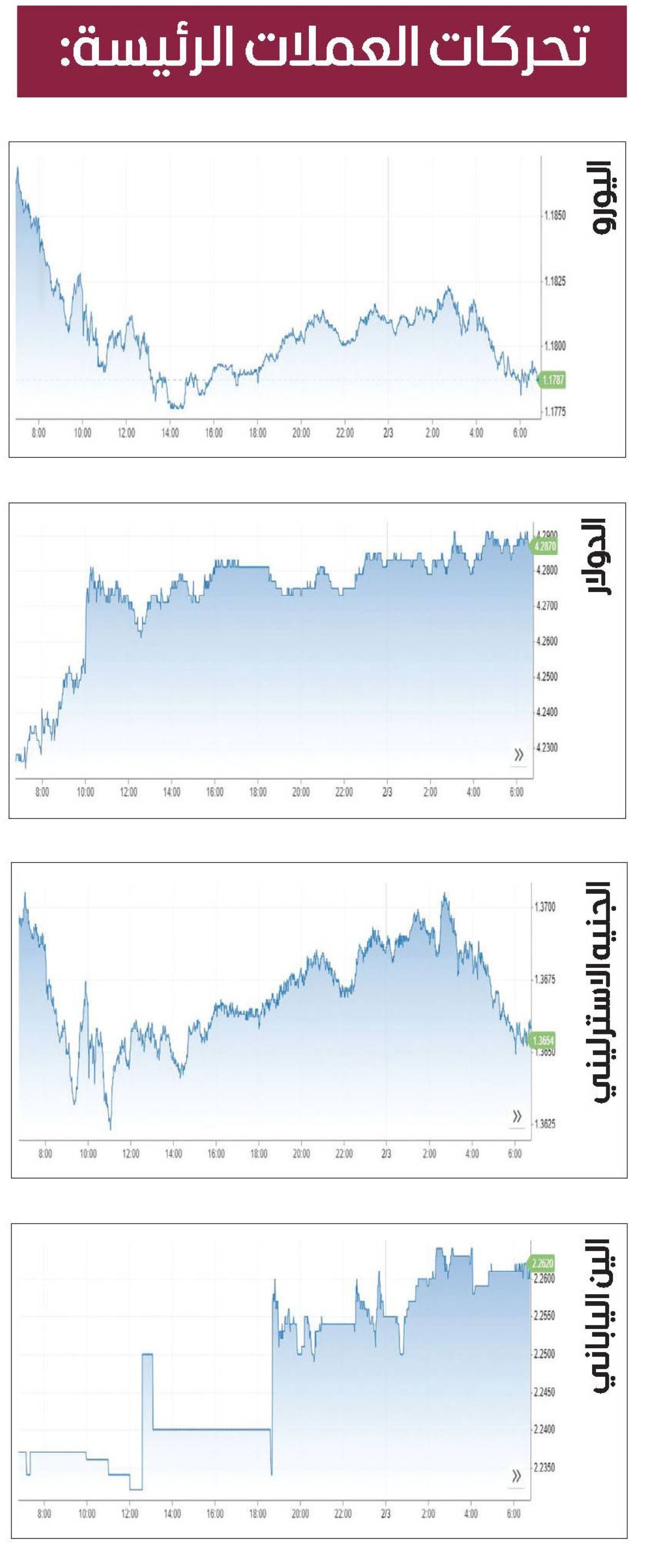 واستقر ‌مؤشر الدولار، الذي يقيس أداء العملة الأمريكية مقابل سلة من العملات، عند 97.53 بعد ارتفاعه 1.5 % خلال يومين. وصعد اليورو 0.12 % ليصل إلى 1.1804 دولار.