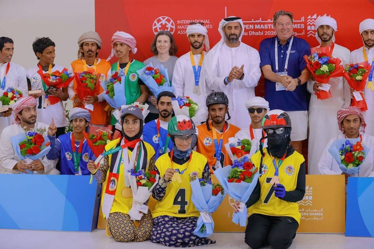 اختتم اتحاد الإمارات لسباقات الهجن اليوم سباق "ألعاب الماسترز، أبوظبي 2026"، التراثي في المضمار الجنوبي بالوثبة، لمسافة 1.5كم، وسط حضور جماهيري كبير من كافة فئات المجتمع.