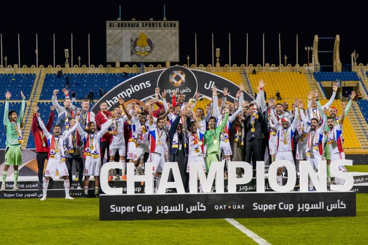 توج الشارقة بلقب كأس السوبر الإماراتي القطري بعد فوزه بركلات الترجيح على مضيفه الغرافة 5-4، خلال اللقاء الذي جمع الفريقين مساء اليوم على ملعب استاد ثاني بن جاسم بالعاصمة القطرية الدوحة، بعد مواجهة فوق الوسط انتهى زمنها الرسمي بالتعادل الإيجابي 1-1 بعد أن تقدم الغرافة بالهدف الأول عن طريق الروماني كومان «ق 64»، وجاء الرد من الشارقة بهدف لوان بيريرا «ق 72»، لينجح بعدها في حسم اللقب لمصلحته بركلات الترجيح التي تألق خلالها عادل الحوسني كعادته في المواعيد الكبيرة، ليقود فريقه إلى ثاني ألقابه في الموسم الحالي.