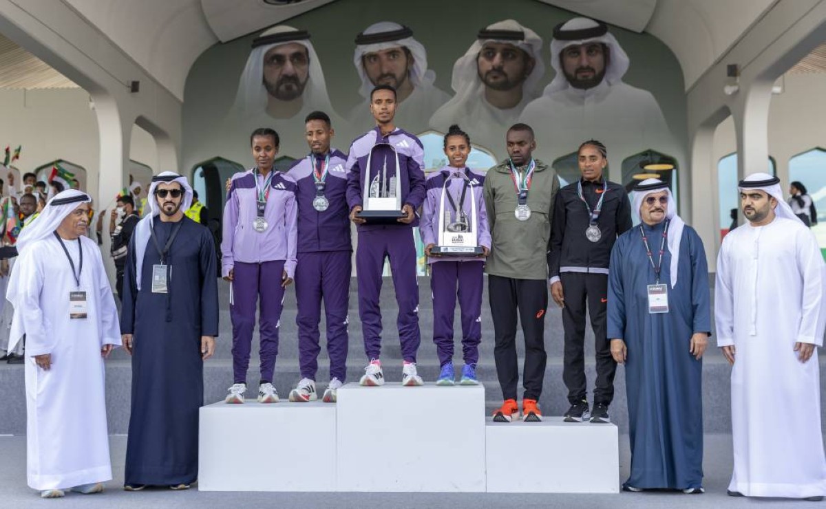 توج سعيد حارب، الأمين العام لمجلس دبي الرياضي، الفائزين في النسخة الخامسة والعشرين من سباق ماراثون دبي العالمي 2026، الذي أقيم بمشاركة واسعة من العدائين واختتمت فعالياته اليوم الأحد في أكاديمية شرطة دبي.